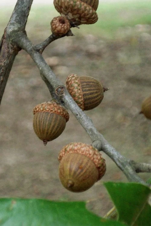 One of the most prized and fastest growing of the red oaks, the Cherrybark Oak is a towering North American native tree that will add 2 or more feet in size every year reaching a height of 90 to 130 feet and a width of 50 to 70 feet when grown in the open. The large dark green leaves up to 8 inches long with 5 to 11 lobes resemble the shape of pagoda, hence the name, and turn yellow-brown in the fall. Insignificant flowers occur in spring in the form of catkins which are followed by small, rounded, brown acorns wearing a feathered, copper color top cap. Young bark is smooth and light grey becoming ridged and darker grey with age. As is with most oak trees, the Cherrybark Oak has many benefits to wildlife, supporting many species of butterflies, moths, birds and mammals. It is highly adaptable to most any soil type, including clay, provided the soil is of average fertility and well drained. It is quite drought tolerant when established but will also tolerate occasionally flooding. This long-lived and no-maintenance oak is ideal for use as a shade tree in large areas or in groupings or groves for forestation and reclamation projects.