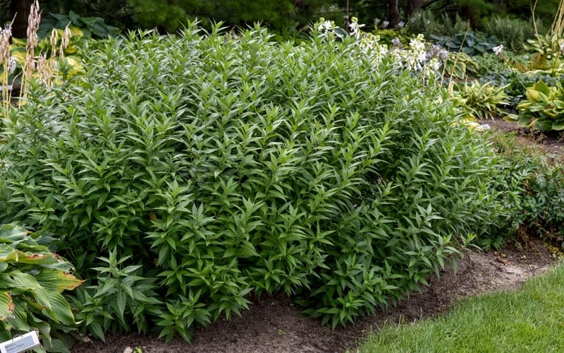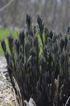 Awarded the 2024 Perennial Plant of the Year by Proven Winners, ‘Storm Cloud’ Bluestar is a superior selection of our North American native species, Amsonia tabernaemontana. In spring, incredibly dark new stems emerge near-black clothed in very dark green leaves with silver veins. The stems stay dark throughout spring. In late spring, a cloud of light periwinkle blue, star-shaped flowers completely cover the foliage reblooming for many weeks afterward. This one has more attractive and dense foliage that remains attractive through summer turning vibrant yellow and golden to orange shades during fall. Its wide and mounding habit to about 30 inches tall and up to 4 feet wide make it an ideal choice for sunny to partially shaded garden and landscape borders where the soil tends to stay moist. A low-maintenance great performer for both northern and southern gardeners, Storm Cloud Bluestar is exceptionally easy to grow thriving in heat and humidity and cold regions where temperatures can go to -30F. You might be happy to know that deer turn their nose up to it.