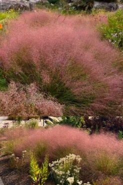 Growing in a clump to 2.5 feet tall in flower and equally as wide, Undaunted Ruby Muhly Grass is ideal for use as an accent in smaller garden spaces or in small to large groupings in sunny landscape borders. Excellent on embankments, hillsides and slopes, where its roots act as a soil stabilizer for erosion control. Makes a nice centerpiece in combination container gardens and is a fine addition to rock gardens, ornamental grass gardens and the Xeriscape (low water need). A lovely display for any sunny spot!