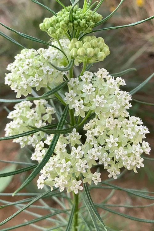 An exceptionally tough but pretty North American native perennial that the Monarch butterflies and numerous other beneficial pollinators will thank you for planting, Asclepias verticillata, commonly known as White Whorled Milkweed, is an upright growing plant that will spread to form a colony, even in dry, poor soils. From mid summer through early fall it features abundant clusters of pretty white flowers formed on tall stems to 3 feet high that are clothed in umbrella-like whorls of needle-like green leaves. The plants are very vigorous and deep rooted so are highly drought tolerant when established. Plant several and they will form a colony or drift in sunny woodland borders and wildflower gardens. Excellent for dry and difficult sites where not much else will grow. You might be happy to know that deer and rabbits turn their noses up to this one.